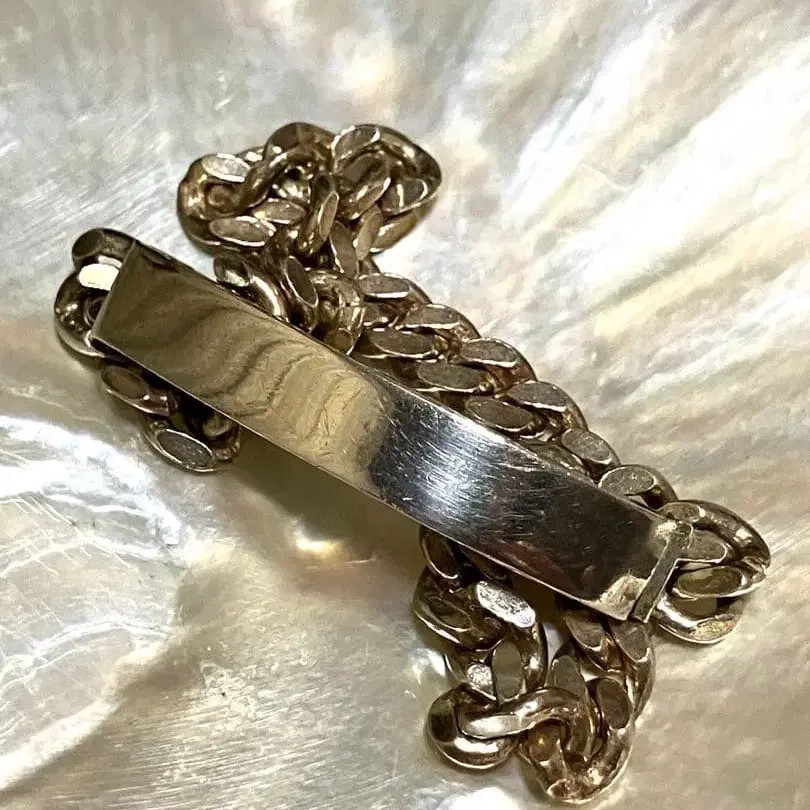 약 30년 전에 구매한 실버 소재의 팔찌입니다. 볼륨감이 있고 존재감 있는 디자인입니다. SILVER .99 각인 있음 약 20cm 빈티지 제품에 이해가 있는 분의 구매를 부탁드립니다.