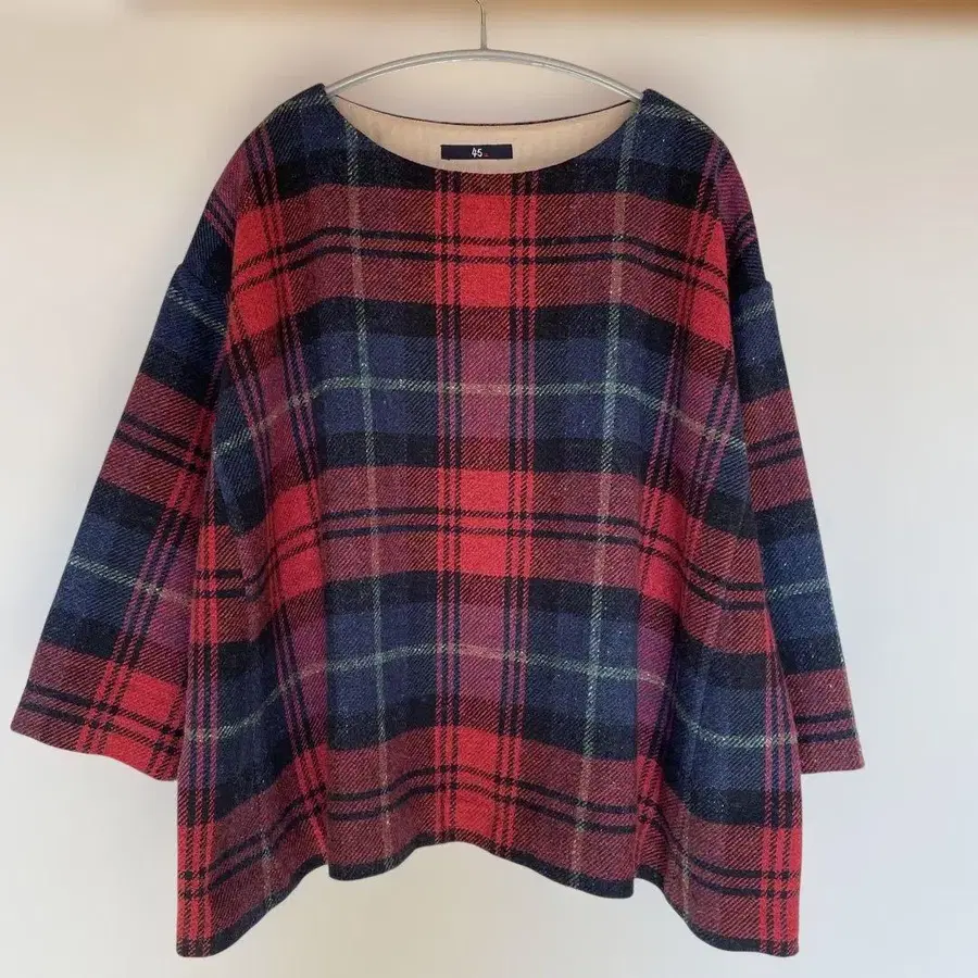 45rpm의 빨간색 타탄 체크 티셔츠입니다. (마비코 블라우스) 모 55% 면 45% 사이즈 0 7부 소매와 긴팔의 중간 정도? 짧은 긴팔 느낌입니다. 가슴 너비: 63cm 기장: 58cm 소매 길이: 약 38cm입니다. 중고품에 이해가 있으신 분만 부탁드립니다.
