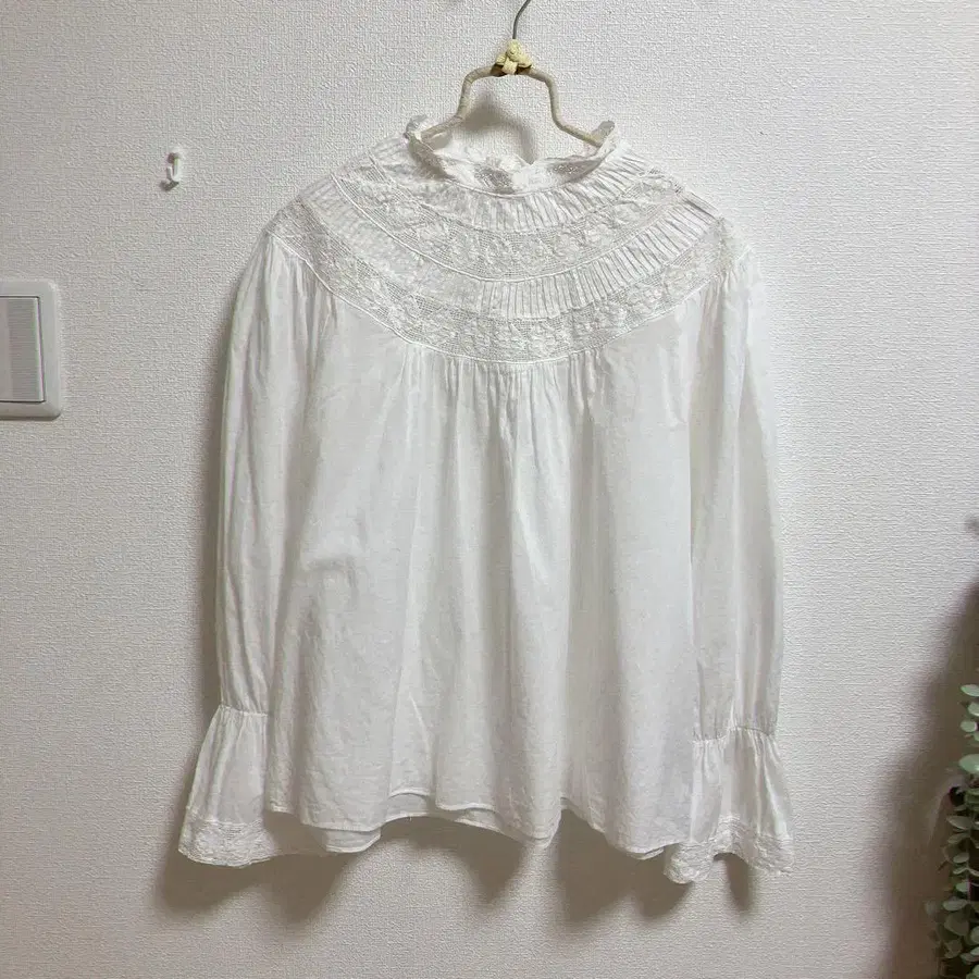 Dot & Stripes CHILD WOMAN 프릴과 하이넥 디자인의 코튼 블라우스입니다. 니트나 가디건과 함께 코디하면 귀엽습니다. 옷깃 안쪽에 약간의 얼룩이 있습니다. 착용 시에는 보이지 않는 위치이지만 신경 쓰이는 분은 구매를 자제해주세요!!! #まるアンビデックス ←기타 앙비덱스 상품은 이쪽 - 색상: 화이트 - 디자인: 프릴, 레이스 - 소재: 코튼 - 소매 스타일: 플레어 소매 - 넥 스타일: 하이넥 사이즈 - FREE SIZE