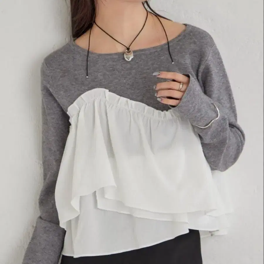 글램 립스 그레이 슬리브리스 니트 도킹 셔츠