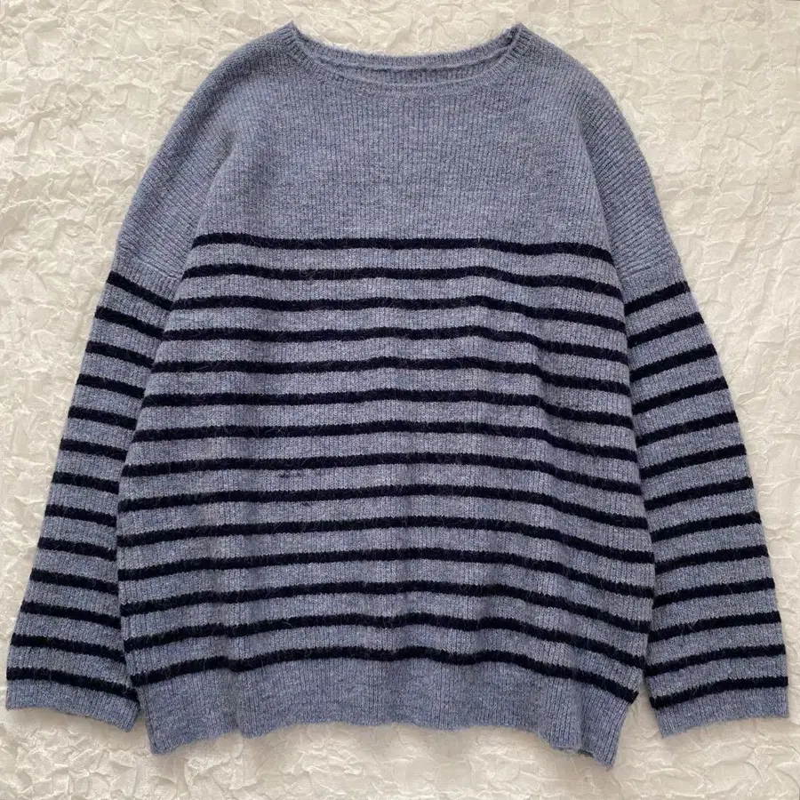 알파카 혼방 편직 보더 니트