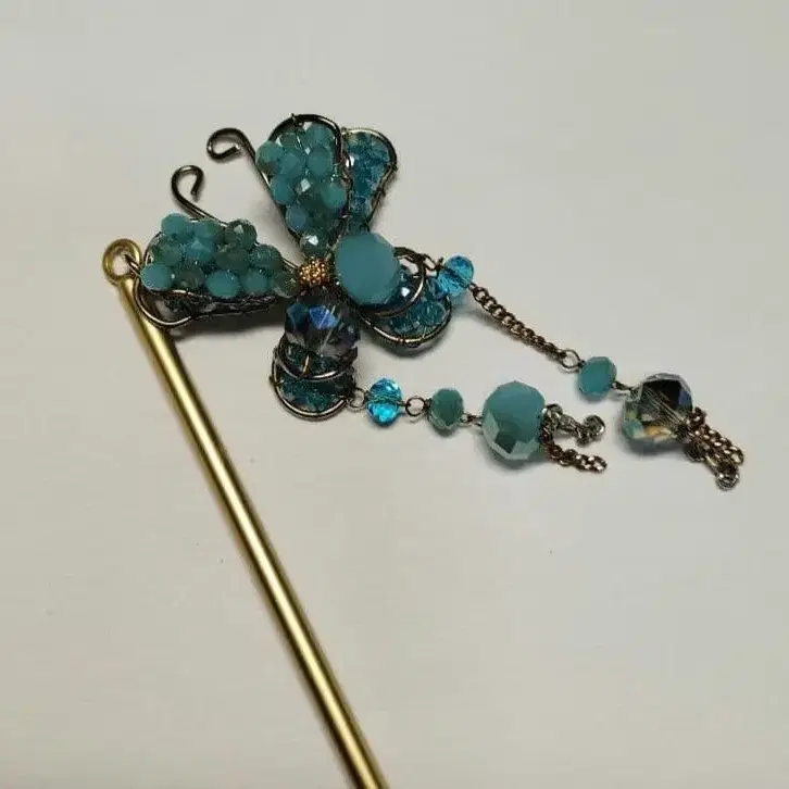 시미즈자카 유리관 헤어콤 이슬비 나비 화이트 teftef