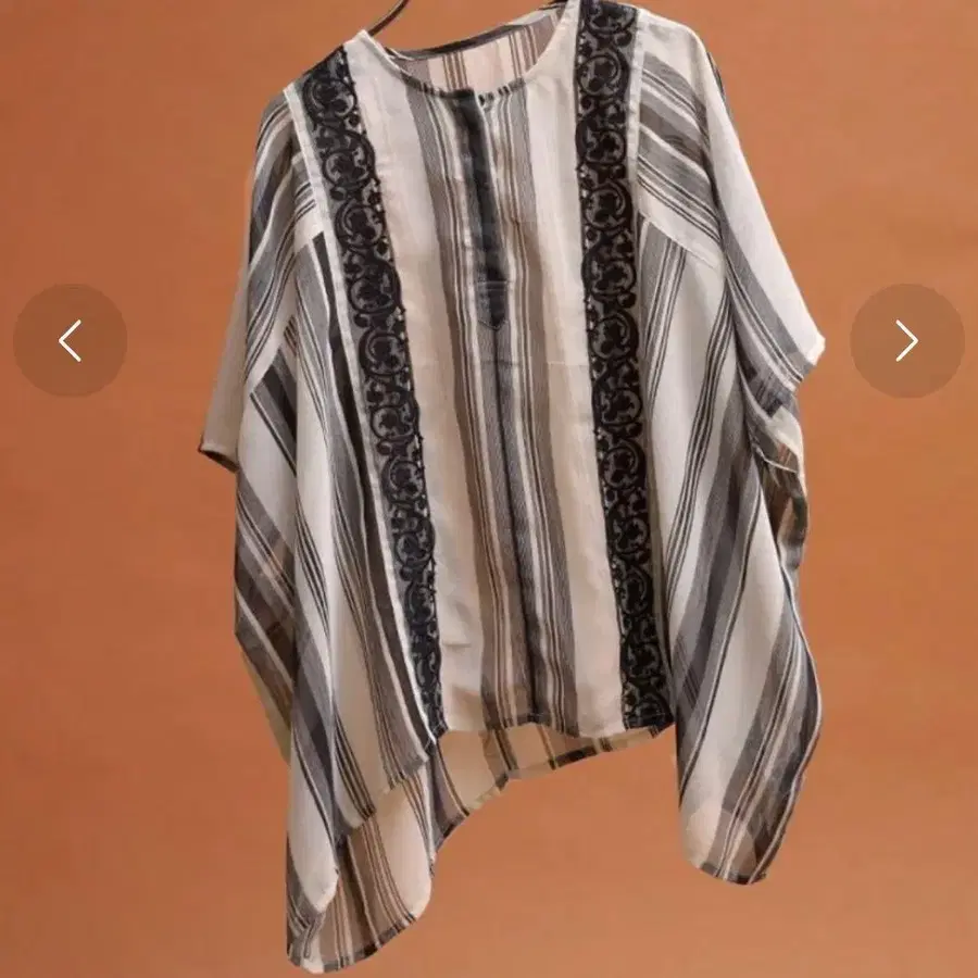 미사용 새상품 RADIATE 판초 블라우스 차분하고 모던한 분위기가 매력적인 블라우스입니다. 가볍고 부드러우며 유연한 원단감이 특징인, 인도의 폴리에스테르 조젯을 사용했습니다. 통기성과 드레이프성이 뛰어나 무드 만점인 1착입니다. 판초 같은 분위기의 실루엣도 포인트입니다. 전면부에 들어간 블랙 자수 디자인이 악센트가 되어 깔끔한 인상을 줍니다. 같은 패턴의 하의와 함께 셋업 스타일 코디나, 상의를 메인으로 한 심플한 하의 코디를 추천합니다. 정가 13000엔 9호 (cm) 기장: 62 화장: 45.5 가슴 너비: 88 [ 소재 ] 소재 | 본체 폴리에스테르: 100% 자수 실 레이온: 100% 비침 | 있음 신축성 | 없음 원산국 | 인도 가정 세탁 | 불가 포켓 | 없음