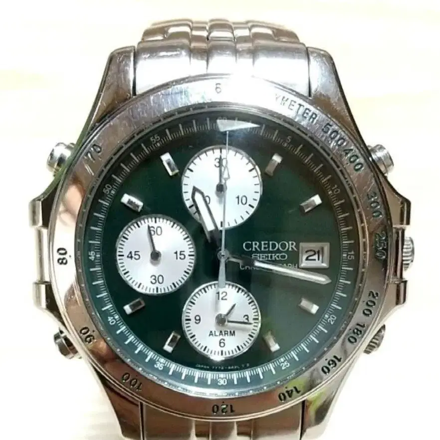 크레도르 파시피크 7T72-6A10 남성용 손목시계 다크 그린 다이얼입니다.