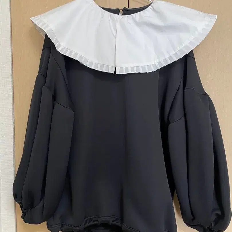 둥근 볼륨 슬리브와 몸판 디자인에 빅 칼라가 포인트가 되는 상의 ★