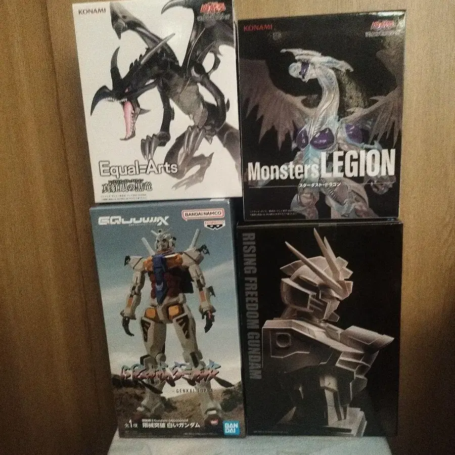 유희왕 건담 피규어 4체 세트 모두 미개봉품 유희왕 레드아이즈 블랙 드래곤 스타더스트 드래곤 건담 한계 돌파 화이트 건담 시드 프리덤 건담 획득 시 상자 손상 등 이해 부탁드립니다.