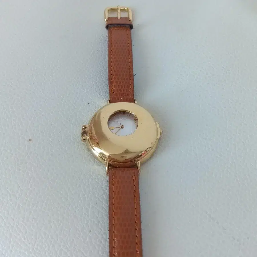 심플한 디자인의 골드 컬러 케이스와 브라운 가죽 스트랩의 시계. #SEIKO 손목시계 - 스트랩 소재: 가죽 - 케이스 소재: 골드 컬러 금속 - 다이얼: 화이트 - 스트랩 색상: 브라운 - 디자인: 심플한 라운드형 작동 확인은 하지 않았습니다. 방문해 주셔서 감사합니다.