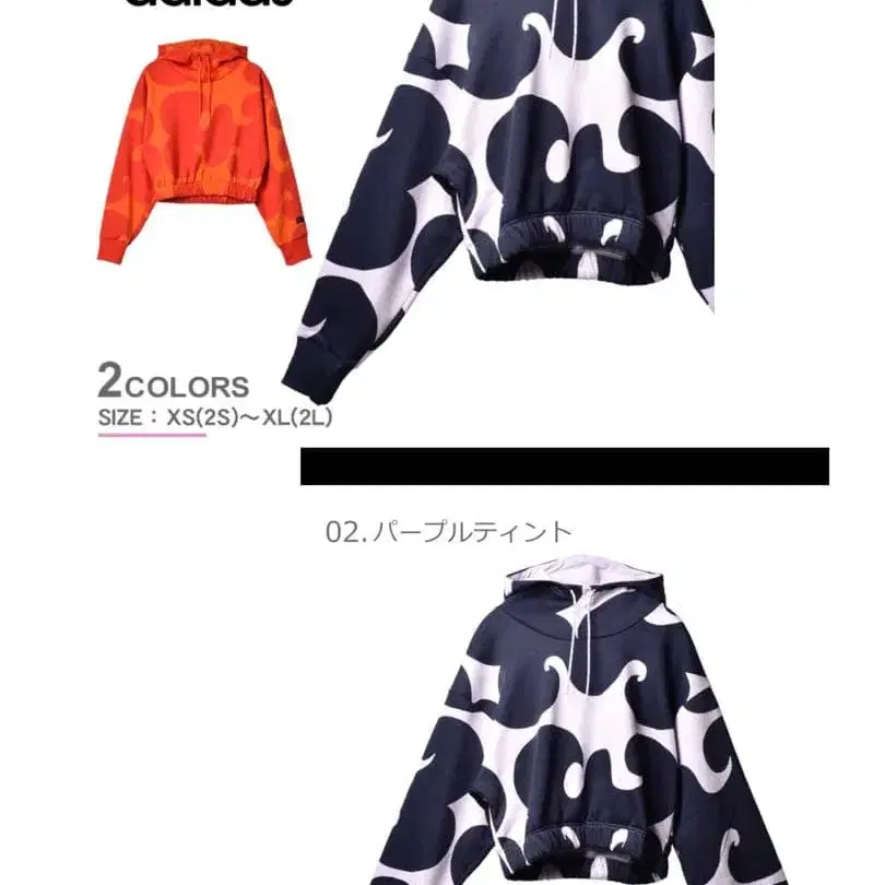 미사용 새상품 택 포함 정가 9350엔 - 브랜드: adidas marimekko - 색상: 퍼플 핑크 - 사이즈: M - 스타일: 후드 부착 크롭 후드티 - 특징: 그래픽 디자인 방문해 주셔서 감사합니다.