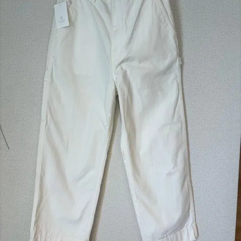 화이트 페인터 팬츠, 사이드와 백에 포켓 부착, 메탈 버튼 사양 - 상태: 미사용 새상품 - 색상: 화이트 - 스타일: 치노 팬츠 - 포켓: 사이드 포켓, 백 포켓 있음 - 버튼: 메탈 버튼 정가 이하 판매입니다.