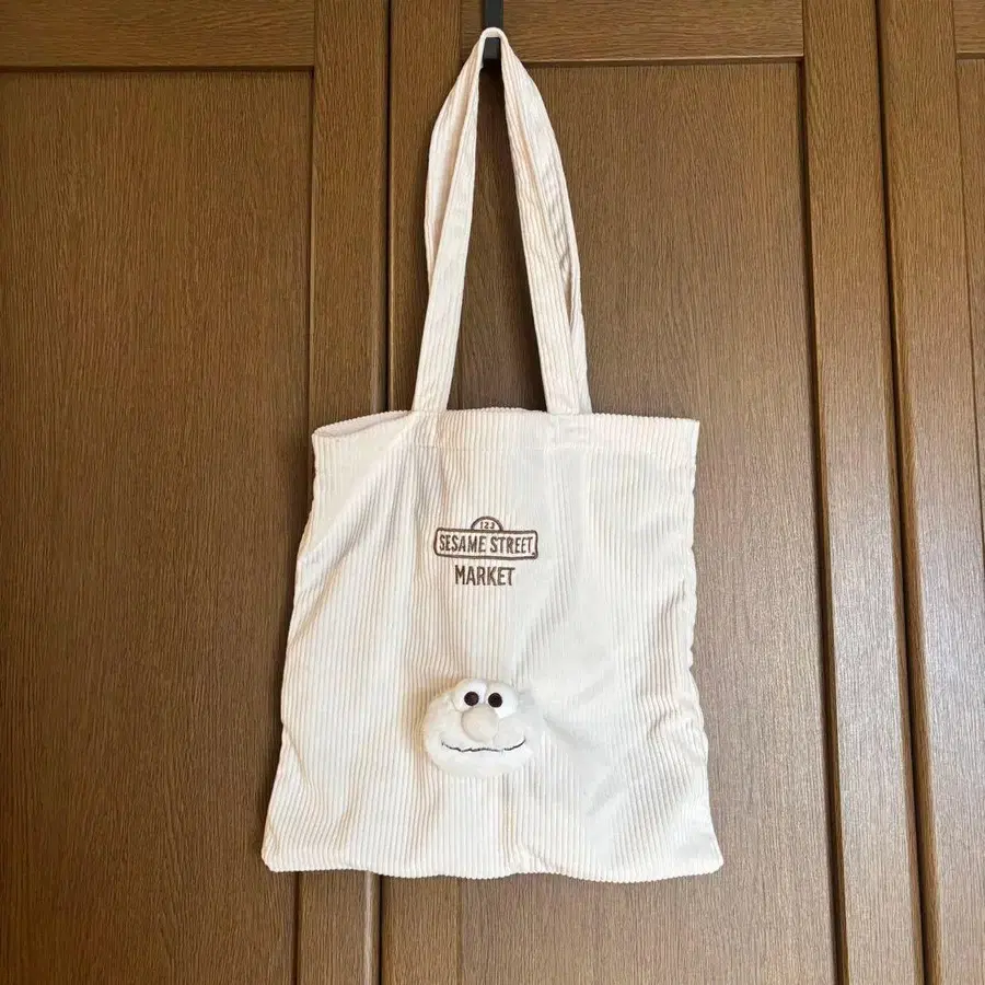 세서미 스트릿 카페에서 구매했습니다. 요철이 있는 코듀로이 원단으로, 앞면에 하얀 엘모가 있습니다. 세서미 스트릿 엘모 화이트 페이스 토트백 정가 5,390엔
