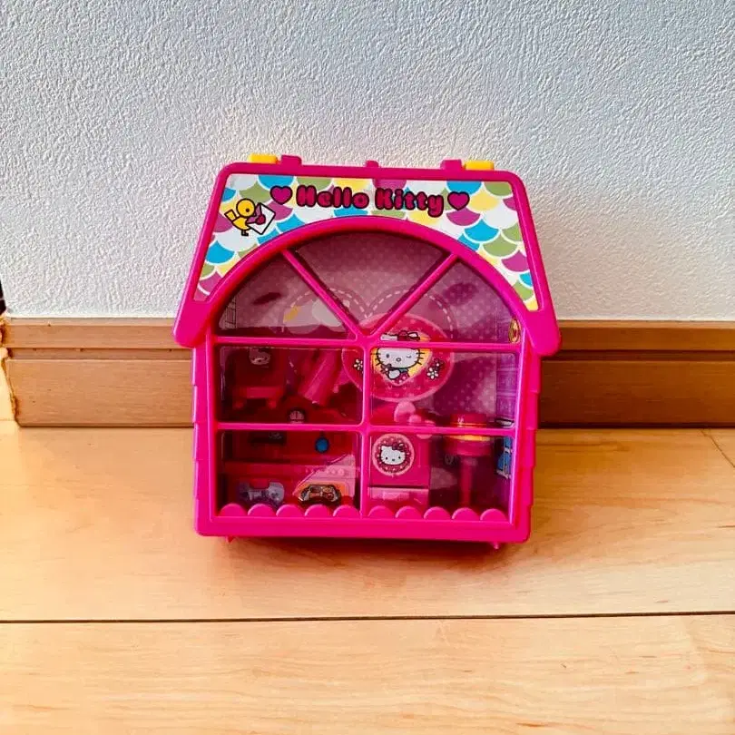 헬로키티의 귀여운 장난감 집으로, 가구와 캐릭터 인형이 포함되어 있습니다.