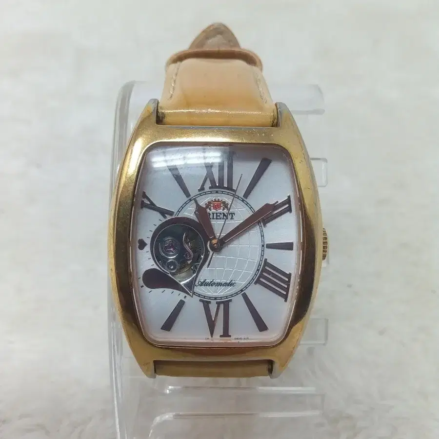 오픈 하트 디자인의 자동 와인딩 시계, 토트형 골드 케이스와 베이지 가죽 스트랩이 특징입니다. - 모델: 자동 와인딩 시계 - 색상: 골드, 베이지 - 다이얼: 화이트 - 스타일: 토트형 - 특징: 오픈 하트 디자인 방문해 주셔서 감사합니다. 제품 정보 본체 폭: 약 35.6mm 팔 둘레: 프리 상태 작동 확인 완료. [ 방풍 ] 사용감이나 긁힘이 없는 새상품급입니다. [ 케이스 ] 사용감이나 긁힘이 있습니다. [ 벨트 ] 사용감이 있습니다.