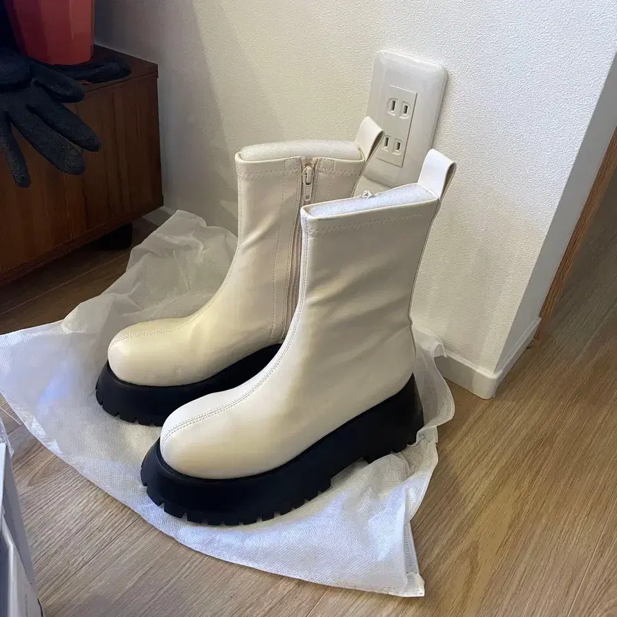 12cm 힐 통굽 지퍼 부츠 경량 화이트 22.5(36) 사이즈