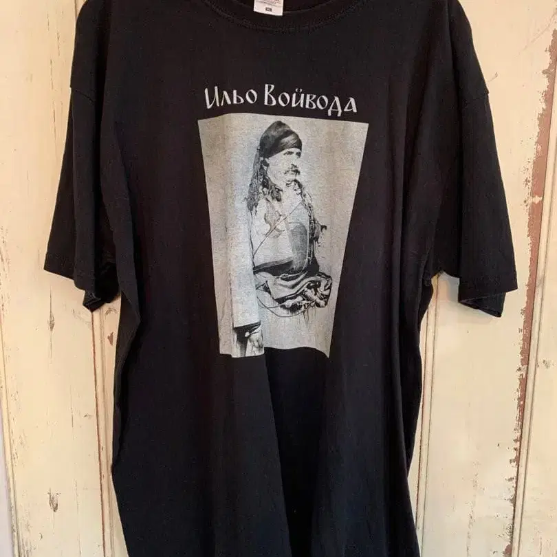 이리야 보이다의 프린트가 들어간 블랙 T셔츠. - 브랜드: FRUIT OF THE LOOM - 사이즈: XL - 디자인: 이리야 보이다 프린트 - 색상: 블랙 구제 의류 매장에서 구매했습니다. 더 이상 입지 않게 되어 판매합니다! 방문해 주셔서 감사합니다.
