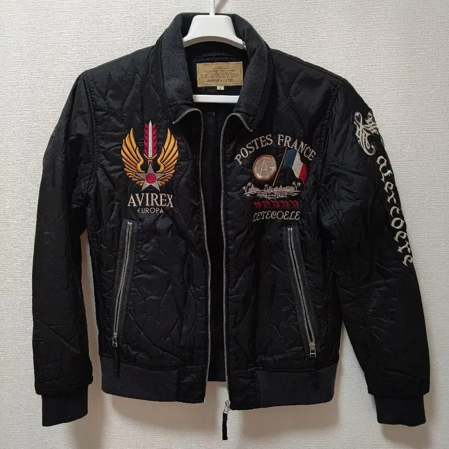 방문해 주셔서 감사합니다. 자수 디자인이 특징적인 분위기 있는 한 벌입니다. - 브랜드: AVIREX (아비렉스) - 디자인: 자수 (POSTES FRANCE) - 디자인: 자수 (AVIREX EUROPA) - 색상: 블랙 - 스타일: 밀리터리 자켓 - 기타: 얇은 충전솜 어깨 너비: 45 가슴 너비: 53 기장: 65 소매 길이: 65