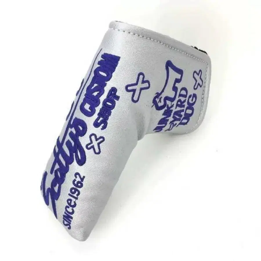 실버와 블루 색상의 커스텀 디자인 퍼터용 헤드커버. - 브랜드: Scotty Cameron - 모델명: 퍼터용 헤드커버 - 디자인: 실버/블루 그래픽 - 특징: 커스텀 디자인 - 스타일: 스튜디오 디자인 방문해 주셔서 감사합니다.