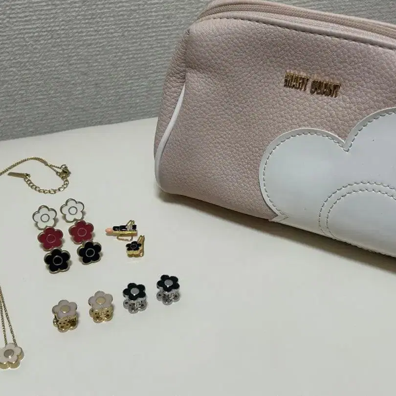 MARY QUANT의 귀걸이, 목걸이, 파우치입니다. 파우치만 사용하였고, 다른 물건들은 미사용 새상품입니다.