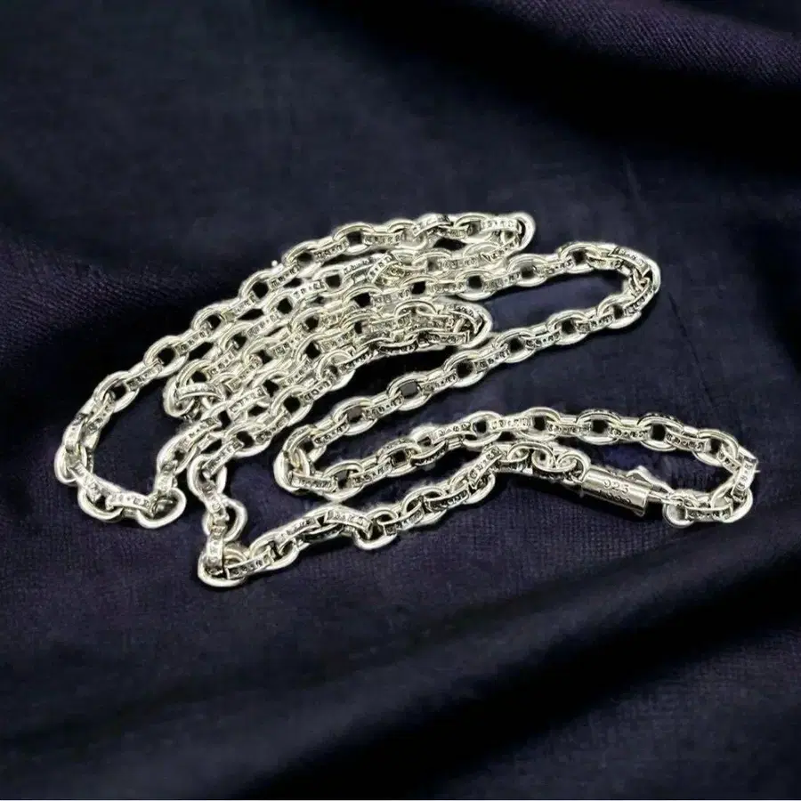 • 실버 각인 링크 체인 목걸이 심플