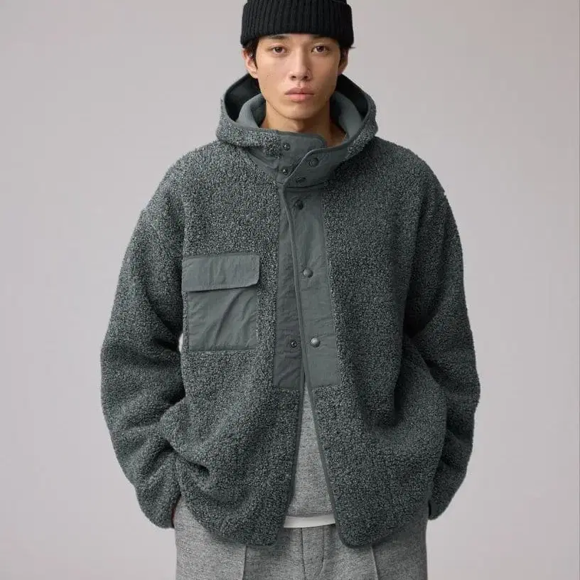 GU 엔지니어드 가먼츠 보아 플리스 스냅 후드티 M 올리브 새상품