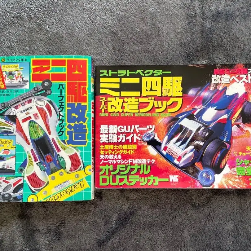 미니 사륜구동 개조 가이드 2권 세트입니다. 한자에는 후리가나가 붙어 있어 저학년 어린이도 읽을 수 있다고 생각합니다. - 타이틀: 미니 사륜구동 개조 슈퍼 북 내용: 개조 가이드, 실전 가이드 등 오리지널 데칼 포함 - 타이틀: 미니 사륜구동 슈퍼 개조 퍼펙트 내용: 베스트 개조, 세팅 테크닉 등 장기 보관된 중고품이므로 신경 쓰이시는 분은 구매를 삼가해 주시기 바랍니다. 잘 부탁드립니다.