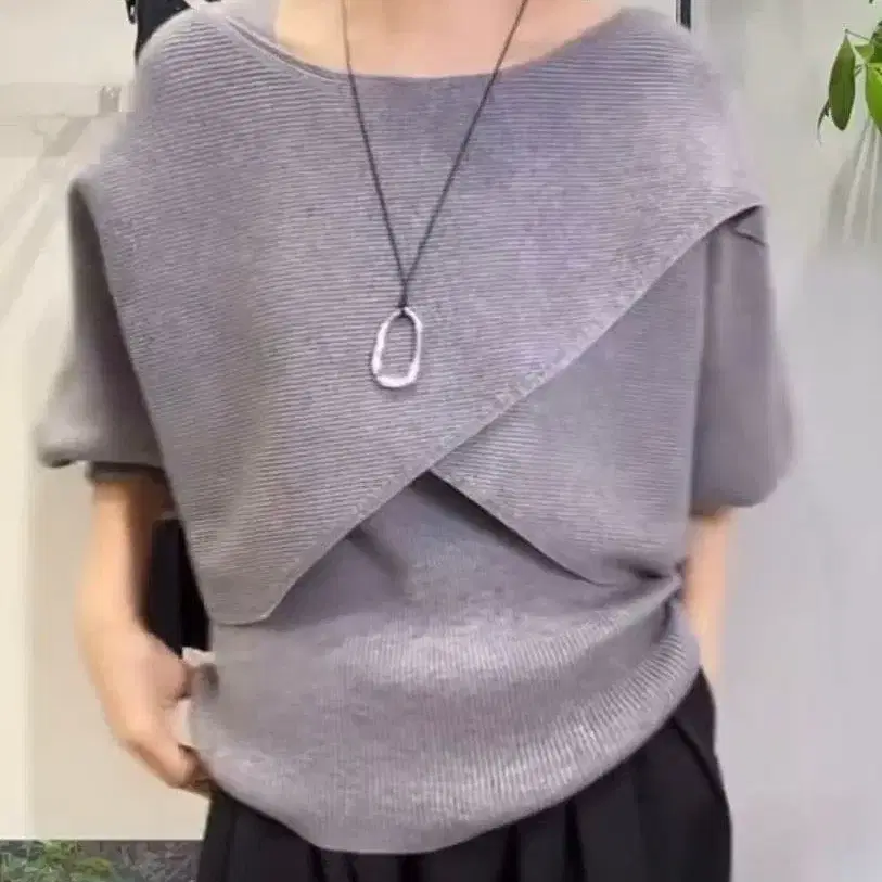 그레이 아지메 케이프 탱크탑 니트 세트