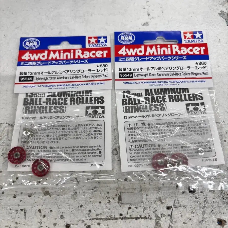 미니 사륜구동 그레이드 업 파츠 시리즈 경량 13mm 올 알루미늄 베어링 롤러(레드) 2개 세트입니다. 사진이 전부입니다. 초레어입니다. 잘 부탁드립니다.