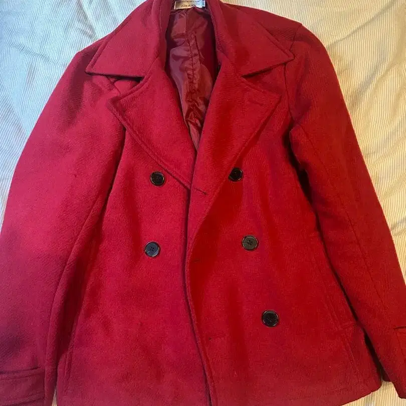 울 소재의 빨간색 피코트, 블랙 버튼 포함. - 브랜드: Jude Bloom - 색상: 빨간색 - 스타일: 피코트 - 버튼 색상: 블랙 - 소재: 울 방문해 주셔서 감사합니다. 사이즈 - L 왼쪽 버튼이 1개 떨어져 있습니다. 잘 부탁드립니다.