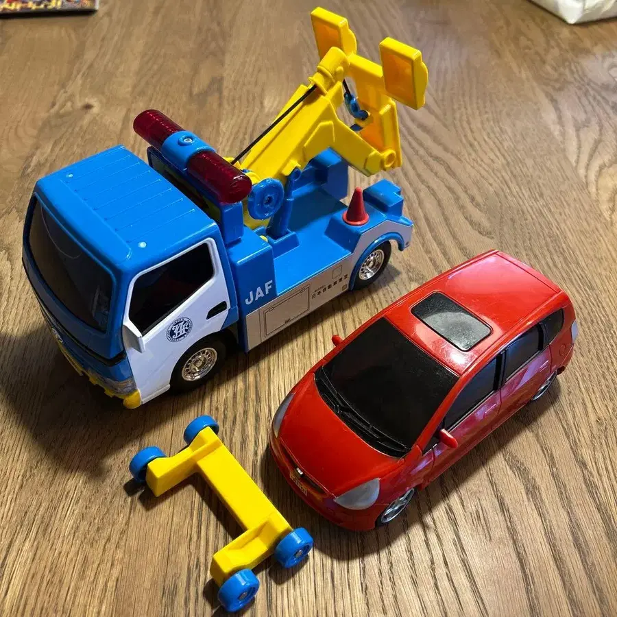JAF 견인차와 빨간색 자동차 세트. 트레일러용 부품 포함. - 차량 타입: 견인차 - 색상: 파랑/빨강/노랑 - 부속품: 트레일러용 부품 아이가 좋아해서 가지고 놀았지만 더 이상 사용하지 않아 판매합니다. 약간의 흠집은 있지만 소중히 사용해서 작동 부분 등이 망가지지 않았습니다! 여전히 즐겁게 가지고 놀 수 있습니다. 상자 없습니다. 짐칸의 작업 중인 패널이 상하로 움직이거나, 자동차를 운반하지 않을 때는 크레인을 감아 손수레를 접는 등 자동차 애호가에게는 놓칠 수 없는 기믹이 가득합니다!