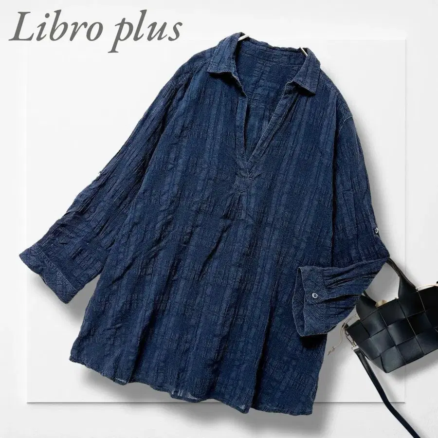 리브로플러스 스키퍼 셔츠(4L) 네이비 빅 사이즈 주름 가공 비침 슬림