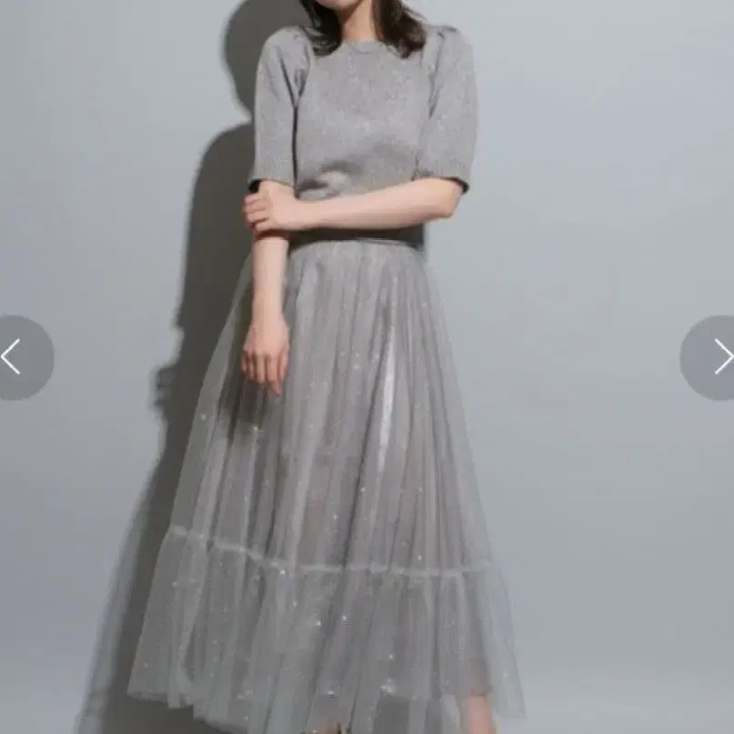 그레이 튤 티어드 롱 스커트