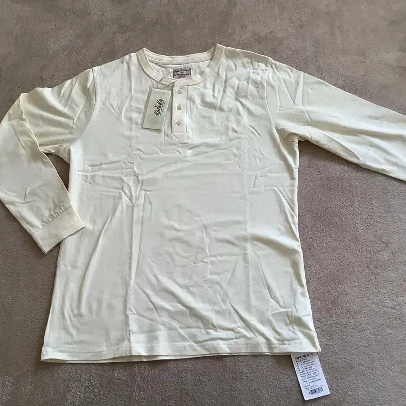 미사용 새상품 장기 자택 보관 크림색 헨리넥 긴팔 셔츠, 코튼 소재로 쾌적한 착용감. - 색상: 크림색 - 스타일: 헨리넥 - 소재: 코튼 - 소매 길이: 긴팔 - 버튼 개수: 3개 방문해 주셔서 감사합니다. 사이즈 - XXL