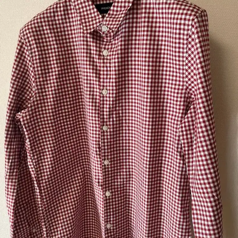 빨간색과 화이트 체크 무늬의 긴팔 셔츠로, 버튼식 디자인이 특징입니다. - 브랜드: PHENOMENON - 디자인: 체크 무늬 - 색상: 빨간색/화이트 - 스타일: 긴팔 셔츠 - 버튼: 버튼식 방문해 주셔서 감사합니다. 사이즈 - M 어깨 너비 40 가슴 너비 46 기장 72 잘 부탁드립니다.