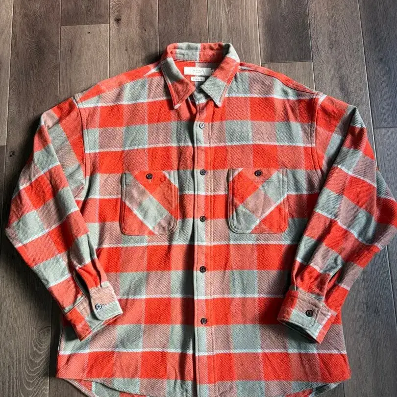 FLAT HEAD 빨검 체크 긴팔 플란넬 셔츠 34 두꺼운 원단