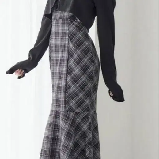 블랙과 체크 무늬 롱 원피스, 오프숄더와 긴팔의 레이어드 디자인. - 색상: 블랙 체크 무늬 - 스타일: 롱 원피스 - 소재: 불명 (니트와 체크 원단의 조합) - 소매 길이: 긴팔 - 디자인: 오프숄더 레이어드 스타일 방문해 주셔서 감사합니다.