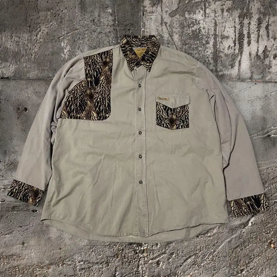 90sUSA제 Feather Flage 페더 프라지 오리 패턴 헌팅 셔츠