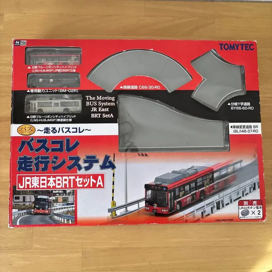 중고품이며, 동력 유닛은 작동하지 않는 것으로 생각됩니다. 부속품의 자세한 내용은 사진으로 확인 부탁드립니다. 레어 상품이므로 찾으시는 분은 꼭 검토 부탁드립니다. 동일본 대지진의 피해 노선 복구 형태로 도입된 **BRT (버스 래피드 트랜싯/버스 고속 운송 시스템)**를 재현한 모델입니다. 최대 특징은, 부속된 버스 차량에 동력 유닛이 내장되어 있어, 도로 부품 아래에 있는 자석을 따라 자동으로 주행한다는 점에 있습니다.