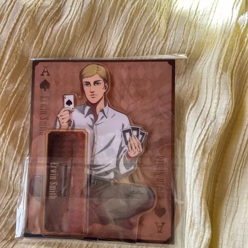 진격의 거인의 엘빈 스미스를 카드놀이 에이스 디자인으로 표현한 아크릴 스탠드. - 캐릭터명: 엘빈 스미스 - 아이템 타입: 아크릴 스탠드 - 디자인: 카드놀이 에이스 디자인 - 시리즈명: 진격의 거인 방문해 주셔서 감사합니다.