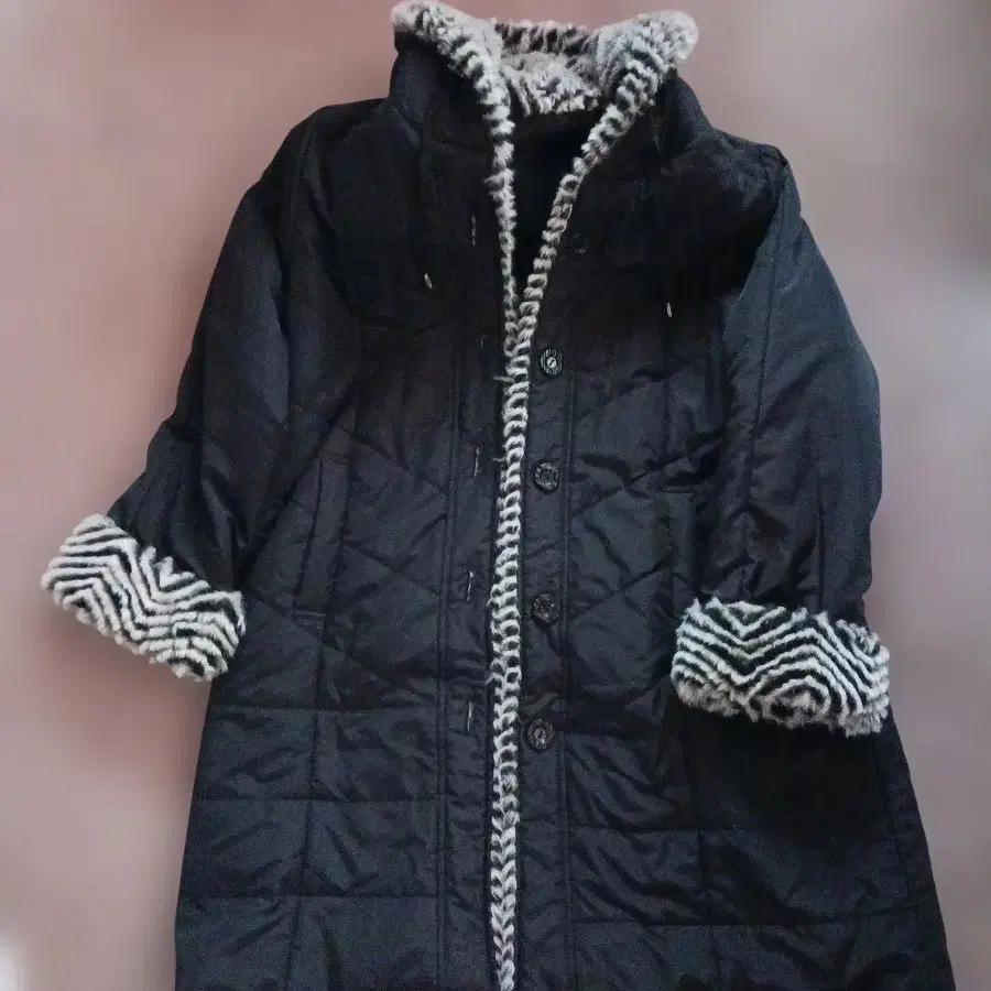 후드 부착 블랙 코트. - 색상: 블랙 - 소재: 폴리에스테르 100% - 디자인: 후드 부착, 버튼 개폐 - 사이즈: L 사이즈 ( 79-94 ) 방문해 주셔서 감사합니다.