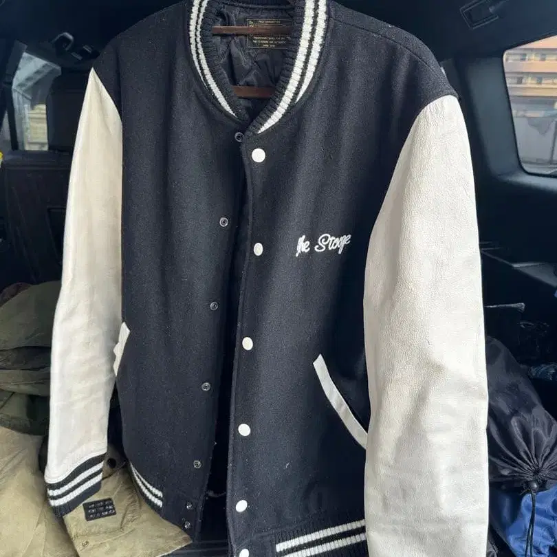 STUDIOUS 바시티 자켓 그레이와 아이보리