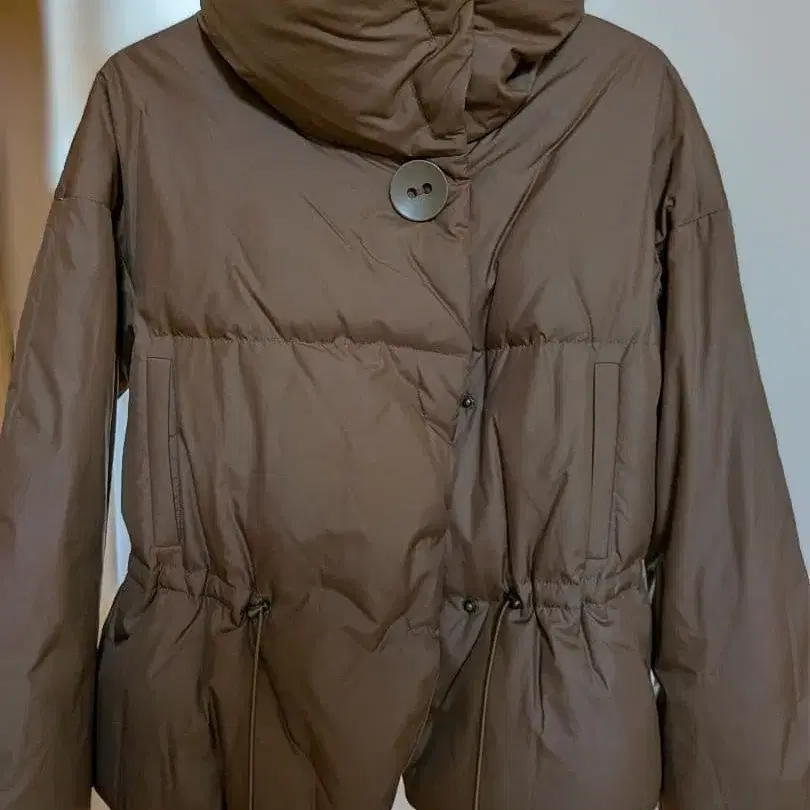브라운 다운 자켓, 허리 조절 기능 포함. - 색상: 브라운 - 디자인: 후드 부착, 단추식 - 특징: 허리 조절 가능 방문해 주셔서 감사합니다. 색상 - 브라운 계열 얼룩, 찢김, 냄새 등 - 없음