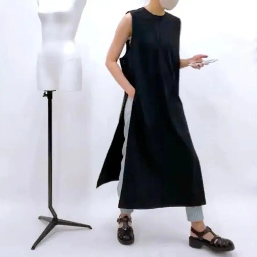 컨디션 최상 LOHEN 블랙 로헨 사이드 슬릿 롱베스트 원피스