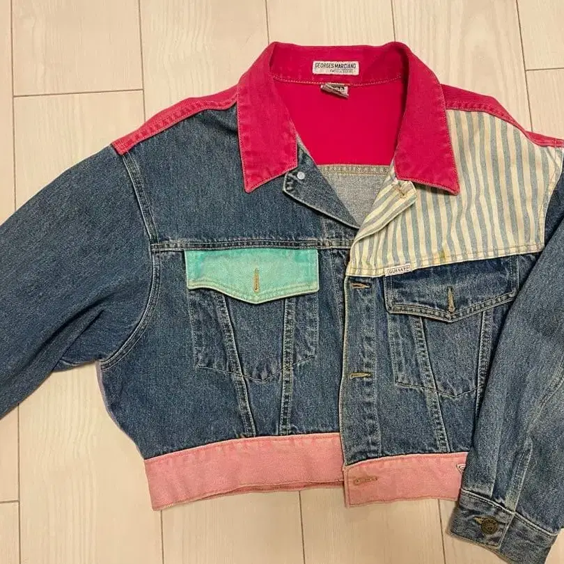 컬러 블록 디자인의 크롭 데님 자켓, 프론트 포켓 부착. - 브랜드: GUESS - 사이즈: L - 색상: 데님, 핑크, 스트라이프 - 디자인: 크롭, 컬러 블록 - 특징: 프론트 포켓, 단추식 방문해 주셔서 감사합니다. 숏 기장의 데님 G자켓입니다. 시모키타자와의 빈티지 샵에서 구매했습니다. 가격 인하 대응 가능합니다. 댓글 부탁드립니다.