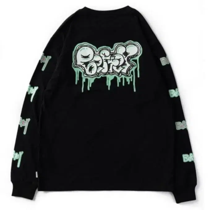 그래피티 스타일의 로고가 특징인 BETEY의 긴팔 T셔츠. 평소보다 많이 늘어난 롱티 마타소 - 디자인: 그래피티 스타일 로고 프린트 - 색상: 블랙 - 로고 색상: 그린과 화이트 - 브랜드명: BEFTEY - 특징: 긴팔, 앞면에 원형 로고 있음 방문해 주셔서 감사합니다. 색상 - 블랙 계열 패턴 디자인 - 프린트 (로고 등) 얼룩, 찢김, 냄새 등 - 없음 *한 번 사람의 손을 거친 물건임을 전제로 전달해 드리고자 합니다. 이미지를 확대하여 자세히 보시고, 납득하신 후 구매 부탁드립니다. 개인 검품이므로 다른 놓친 부분이 없다고는 할 수 없습니다. 이해하신 후 사소한 것을 말씀하시는 분, 놓친 부분을 용납할 수 없는 분, 새상품급을 원하시는 분은 삼가해 주시기 바랍니다.