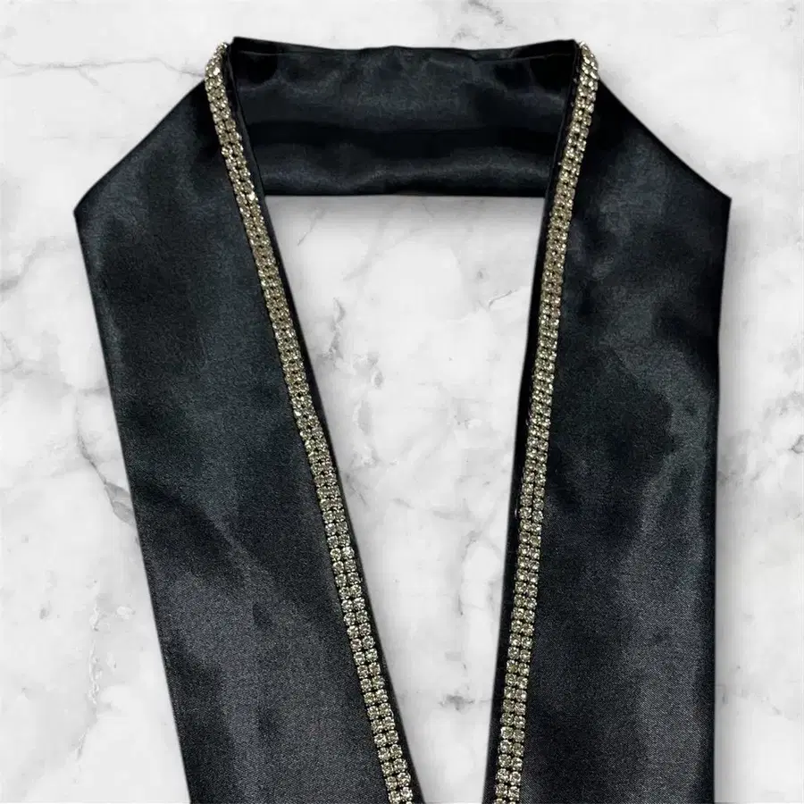 아세테이트 새틴을 사용한 실버 큐빅 레이어트 카라입니다.