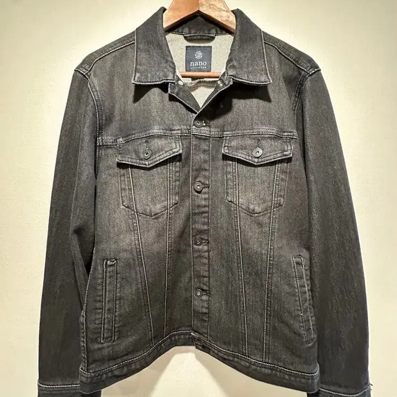 다크 그레이 색상의 데님 자켓, 버튼이 달린 소매로 스타일리시합니다. - 브랜드: 나노 유니버스 - 색상: 다크 그레이 - 디자인: 데님 자켓 - 소매: 버튼 포함 방문해 주셔서 감사합니다.