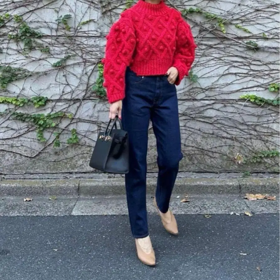 빨간색 터틀넥 니트 긴팔