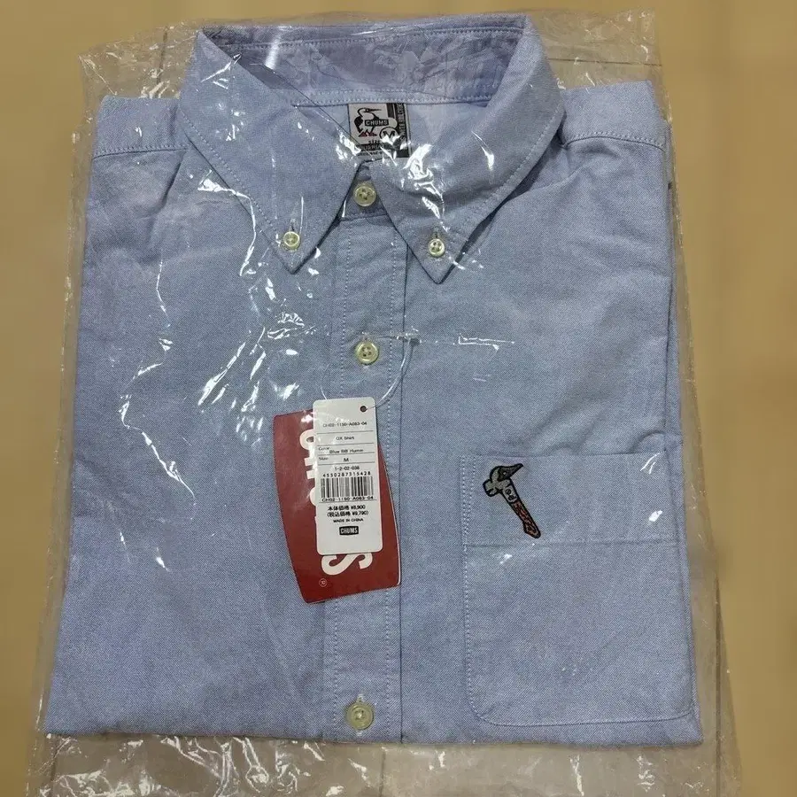 라이트 블루 색상의 CHUMS 브랜드 긴팔 셔츠입니다. 공구 자수가 있어 캐주얼하게 입기 좋습니다.