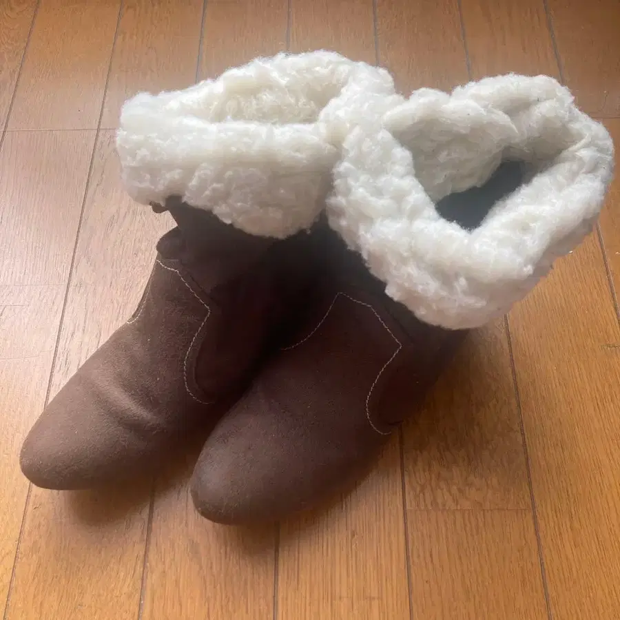 브라운 스웨이드 퍼 부츠