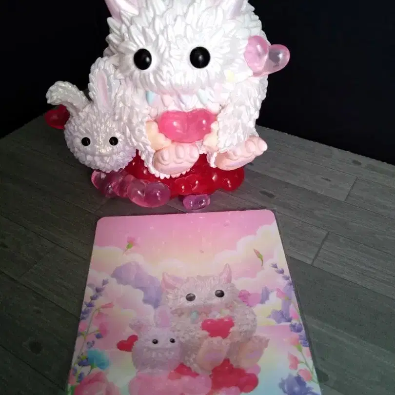 자동 번역되었어요. 원문보기중고 정품: POP MART의 MONSTER PUPPY 시리즈, 핑크와 화이트의 몬스터와 토끼 피규어.