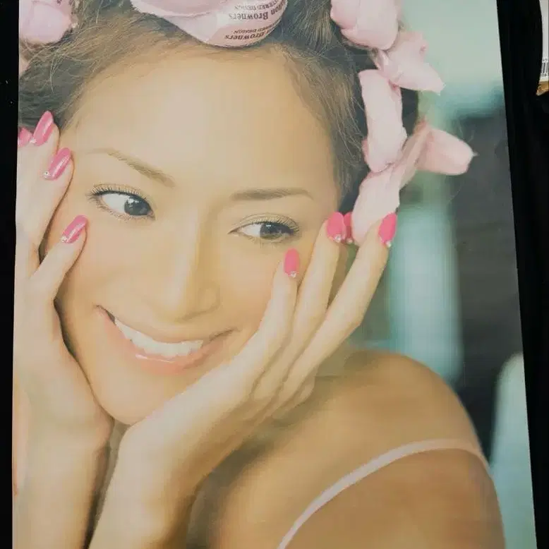 자동 번역되었어요. 원문보기밝은 색감의 대형 포스터, 여성의 미소가 매력적이며 헤어스타일이 특징입니다.
